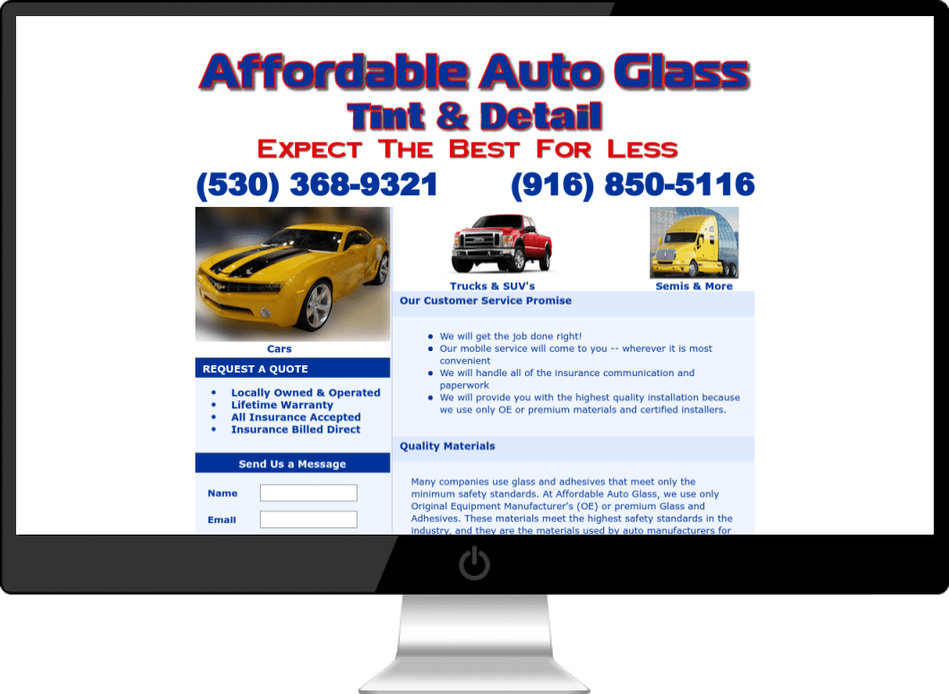 Basic Web Presence site for Auto Glass Provider in Auburn, CA (2009)