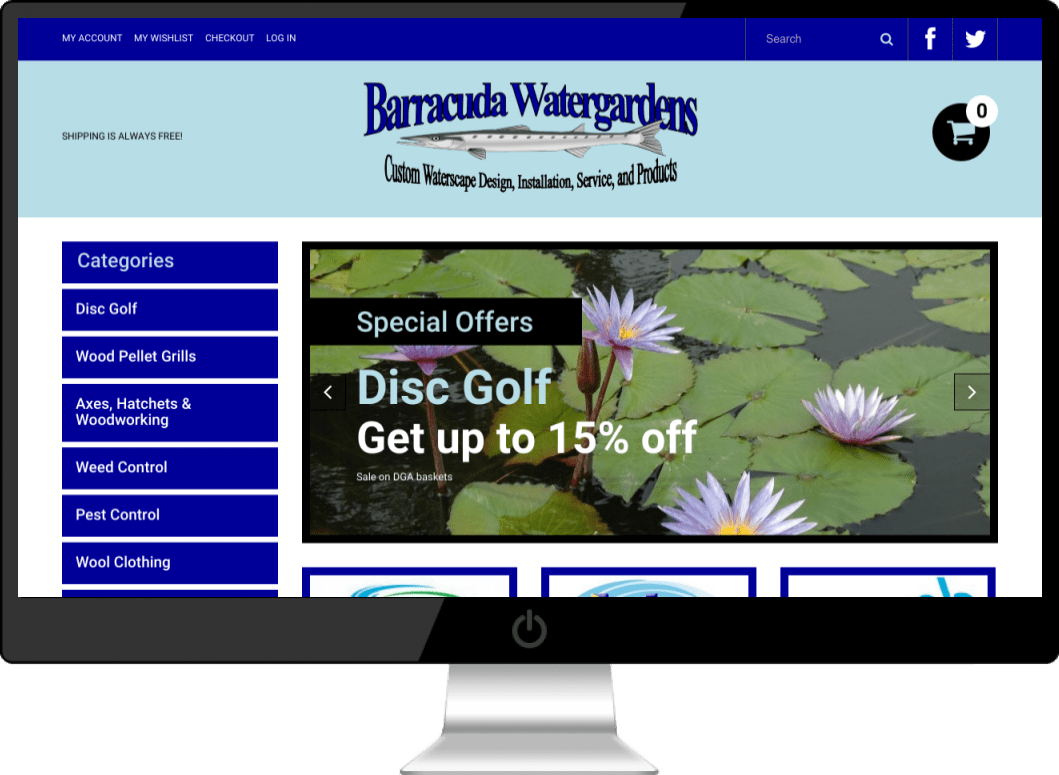 Magento Ecommerce site for Watergarden Store in Auburn, CA (2010)