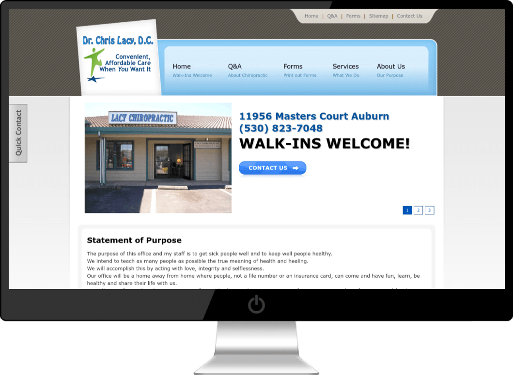 Javascript & CSS based basic site for Dr. Lacy, Chiropractor (Retired) in Auburn, CA