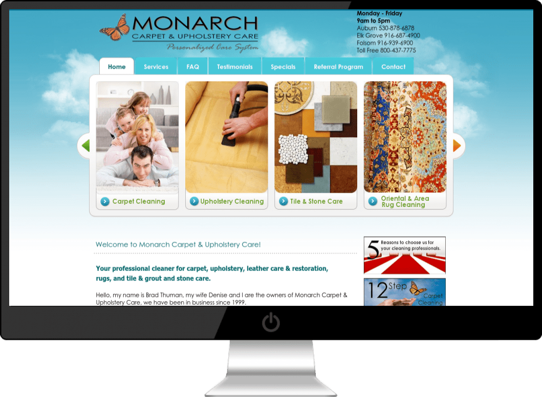 Joomla site for Monarch Carpet Care, Auburn, CA (2011)