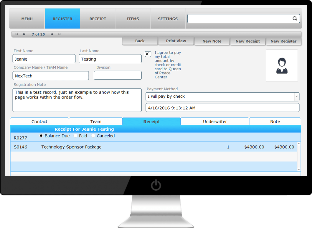 Filemaker Database to manage event Registration for Queen of Peace Center in St Louis, MO (2015)