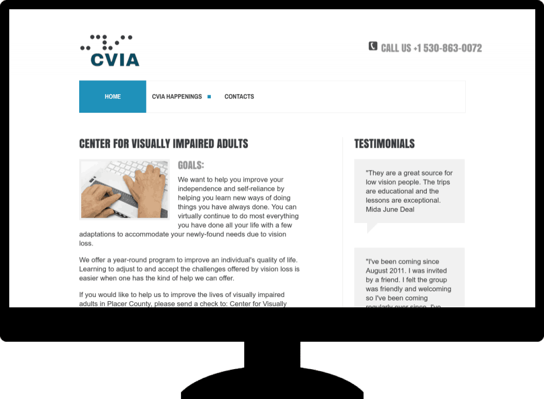 Responsive Joomla CMS site for the Placer County Center for Visually Impaired Adults in Auburn, CA (2016)
