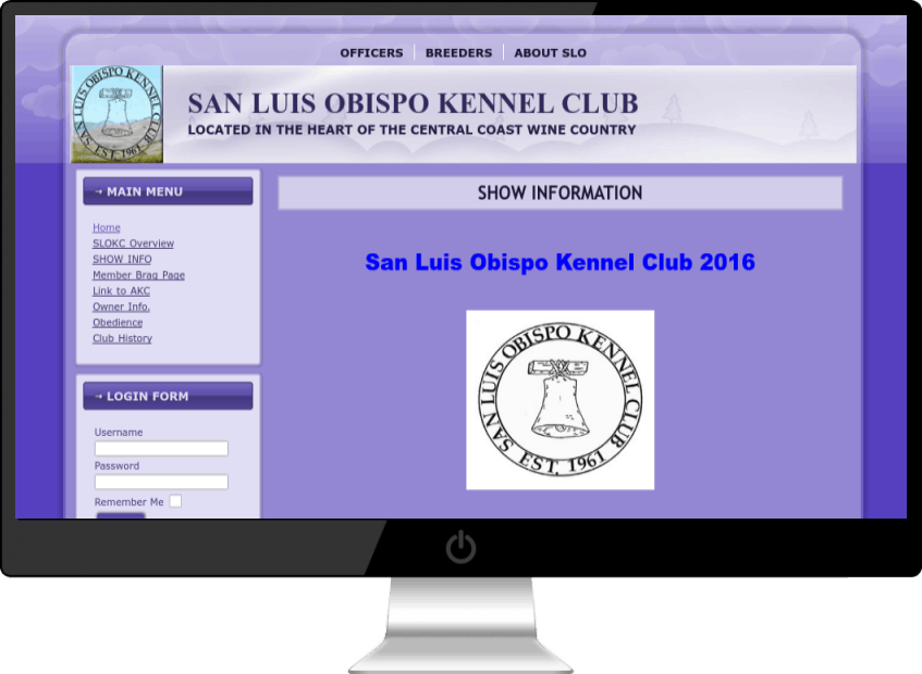 Joomla web site for Kennel Club Provider in San Luis Obispo, CA (2009)